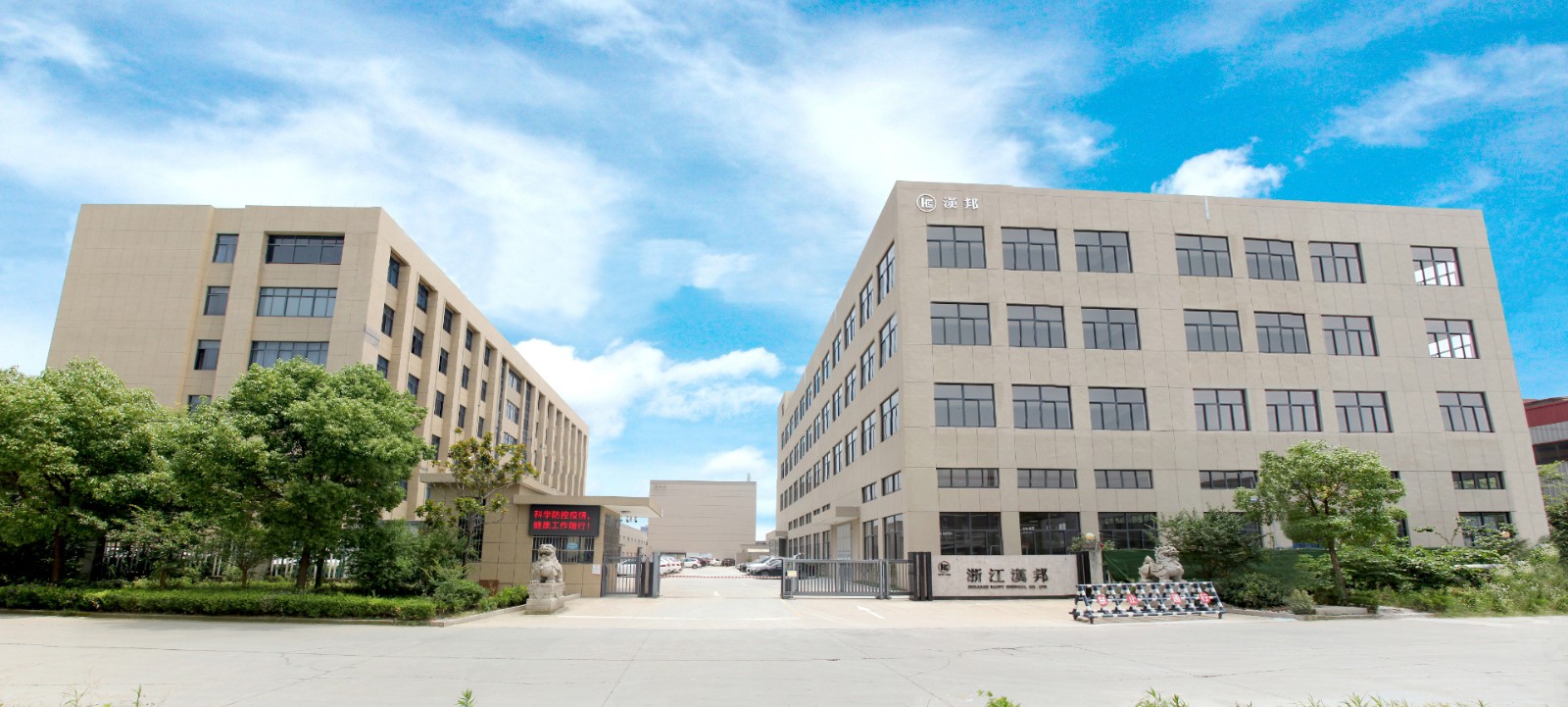 漢立中華,邦交天下 漢邦新材料股份有限公司系國(guó)家高新技術(shù)企業(yè),坐落于浙江省桐鄉(xiāng)市鳳鳴街道化工園區(qū)。